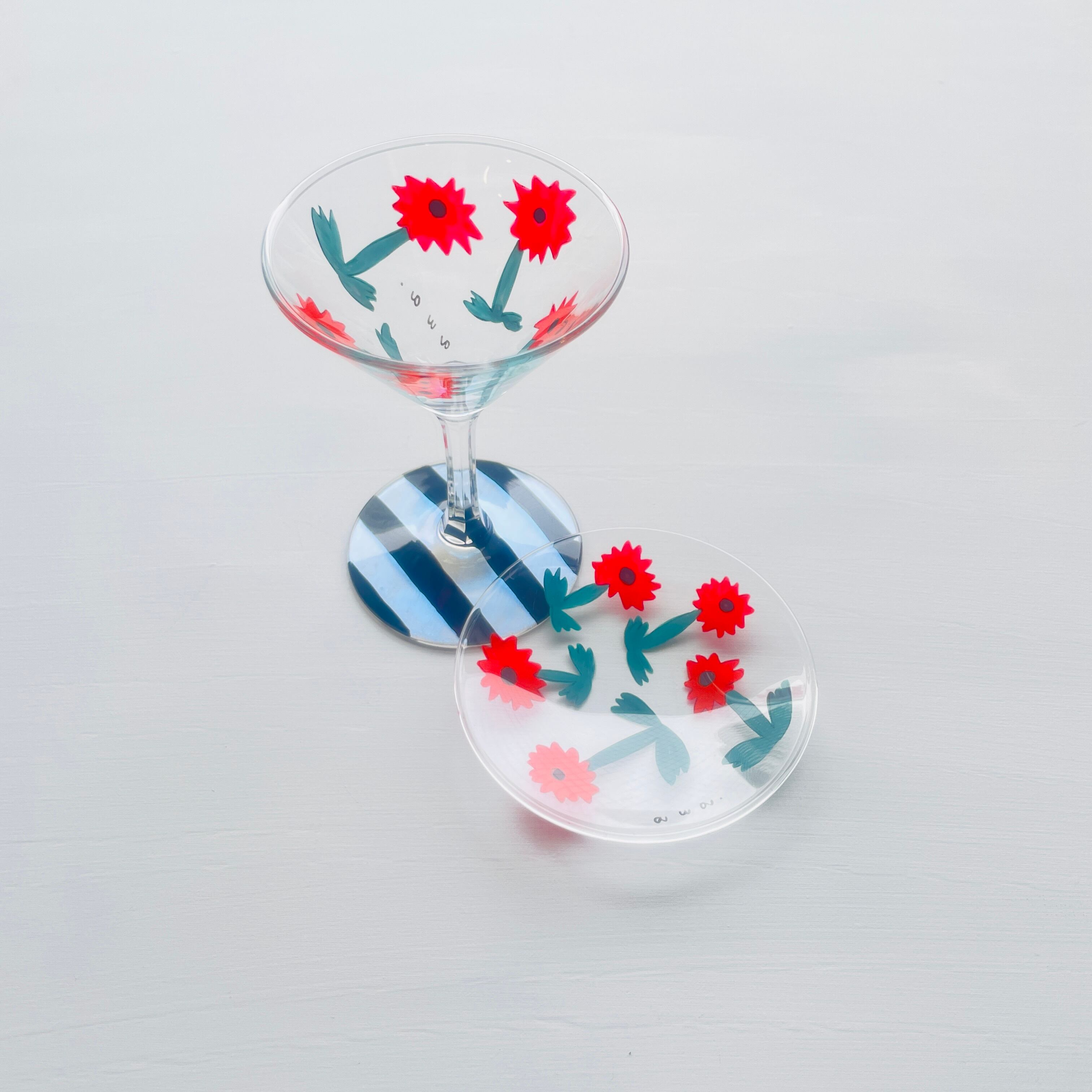9. カクテルグラスと豆皿 橙色の花